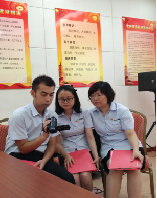 黨支部2位黨員張翼軫、郎梅梅,以及入黨積極分子趙以梅報(bào)名參加了朗誦。朗誦的片段是《習(xí)近平在參觀<復(fù)興之路>展覽時(shí)的講話》,三位同志反復(fù)練習(xí)、琢磨,準(zhǔn)確把握住習(xí)總書記在參觀展覽時(shí)的思路和情感脈絡(luò),用字正腔圓、抑揚(yáng)頓挫的語言,重溫了那個(gè)第一次闡述“中國夢(mèng)”的重要?dú)v史瞬間。辦公室配合黨支部為朗誦配樂和錄像。
